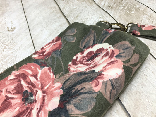 Olive Floral Coraline Wristlet