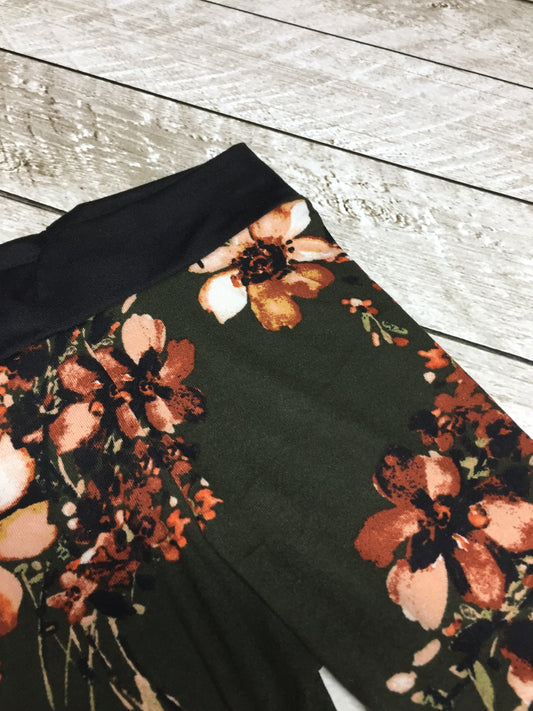 Olive Green Floral Leggings
